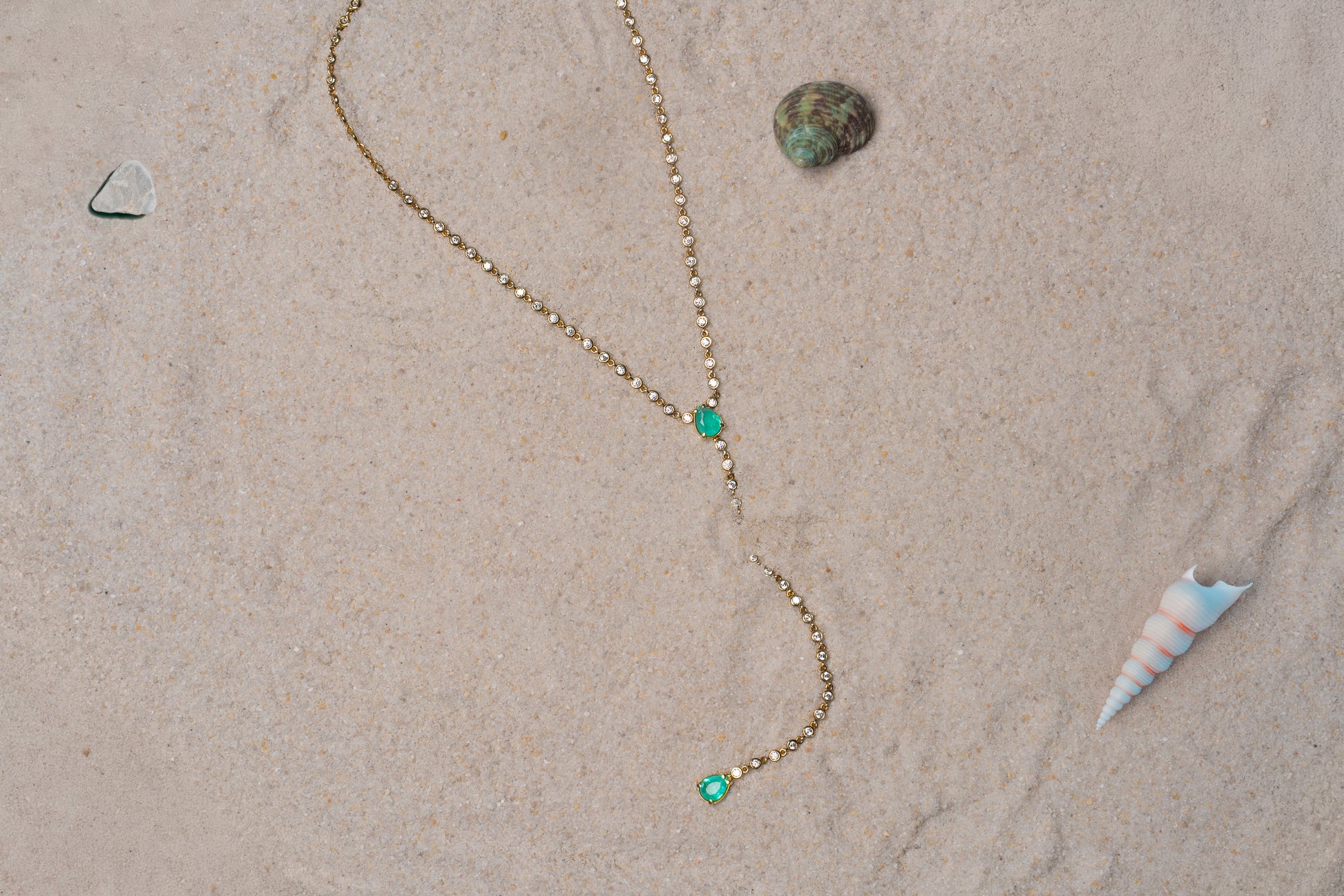 Inspired by the luminous balance between land and water in the Maldives, each piece captures the harmony of earth and ocean — with warm gold tones reflecting sunlit sands and shimmering crystals evoking the tide’s gentle sparkle.