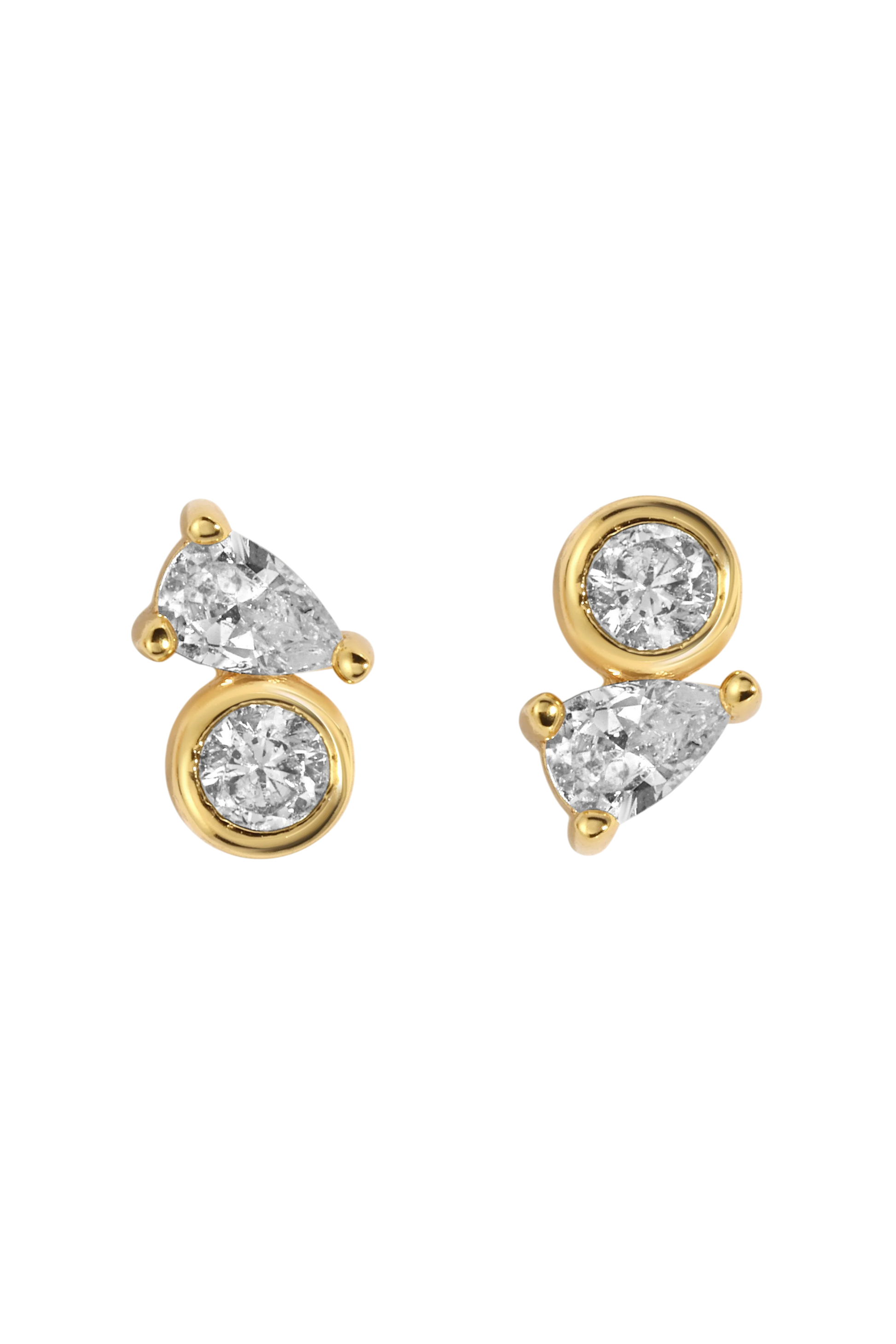 Our Meli Studs are a mini a refined take on modern elegance. Handmade in Istanbul, these earrings have 2-3mm sized stones for that mini sparkle on your little ears. Theyre minimal, but beautiful and classic with the perfect pears and bezel set rounds to add to your everyday stack. These earrings are created using 14K gold vermeil and swarovski stones.