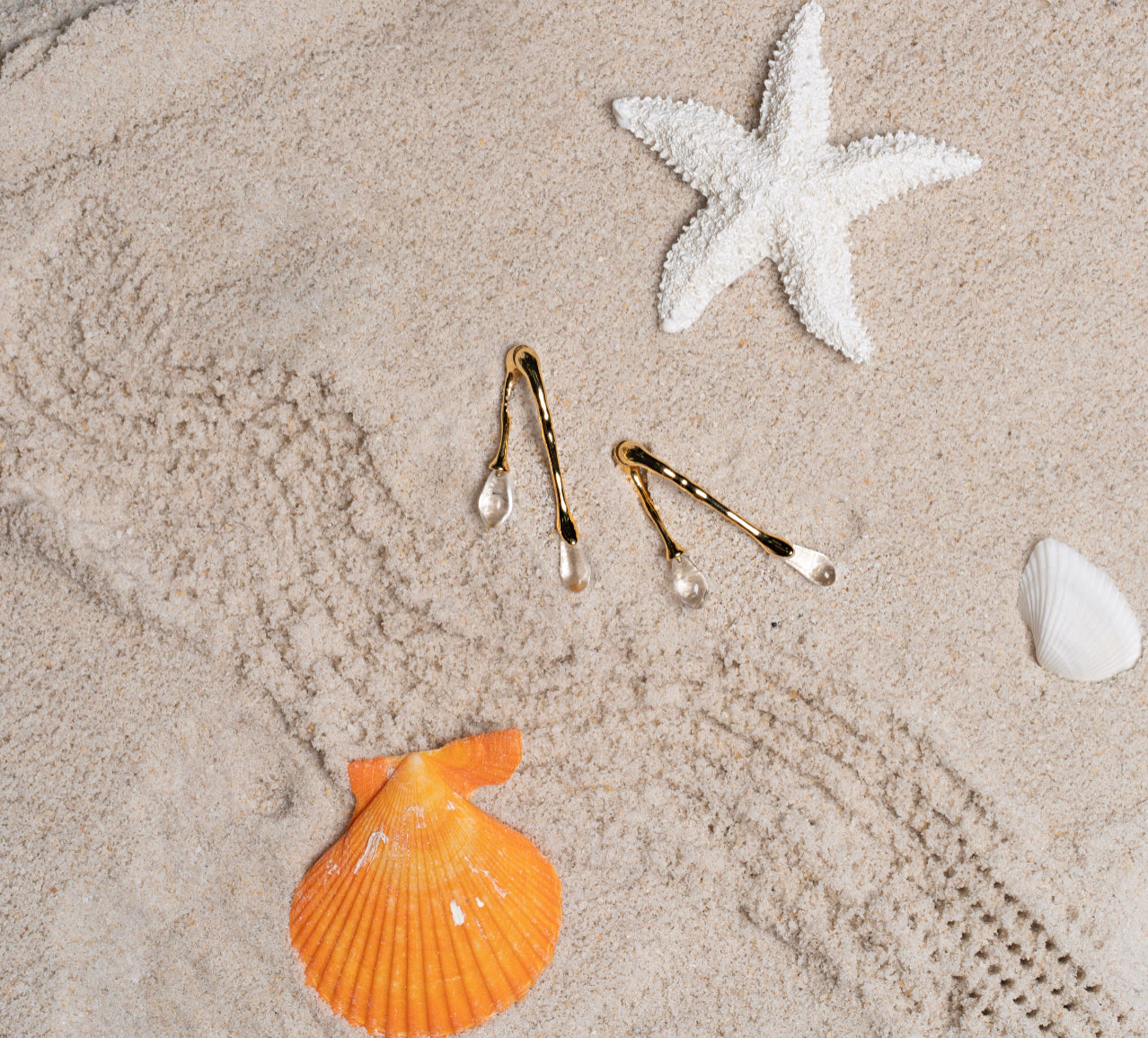 Designed with a multi-dimensional silhouette, the earrings are intentionally asymmetrical—shorter at the back and longer at the front—to create a dynamic, flowing movement that mirrors the gentle rhythm of the sea.